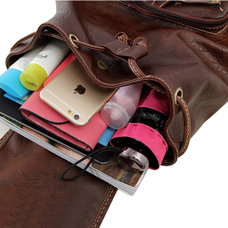 Embrace retro style with the Luxy moon vintage backpack, featuring high-quality PU leather and classic drawstring design for fashion-conscious students.